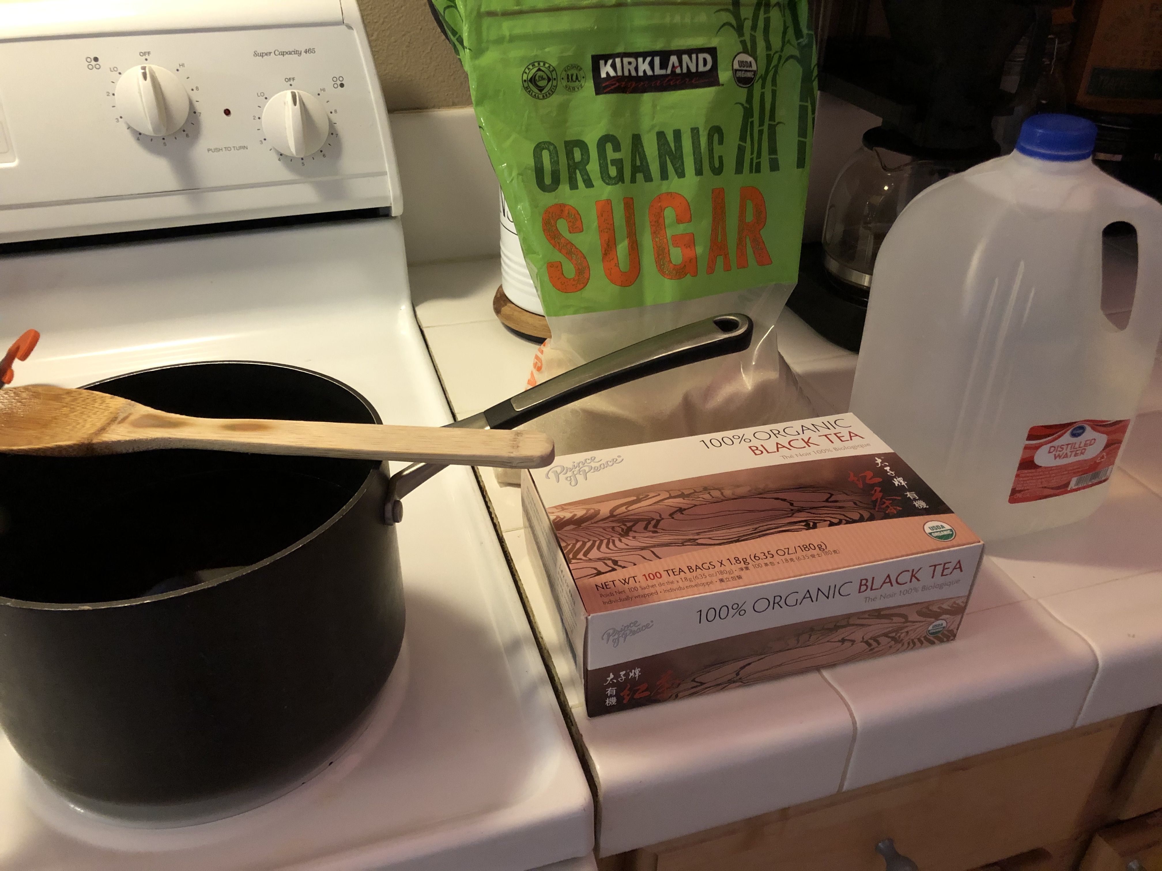 When I met my husband, I introduced him to this magical drink, and he immediately fell in love. When my husband takes an interest in something, it’s never just cursory. He researched the drink, finding out that you can easily make your own. He contacted a friend, and she brought over a SCOBY.