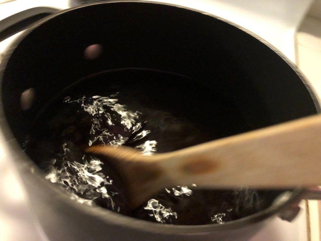 - Bring to boil 4 cups of filtered water in clean pot on stove (I use 4.5 cups because of evaporation).